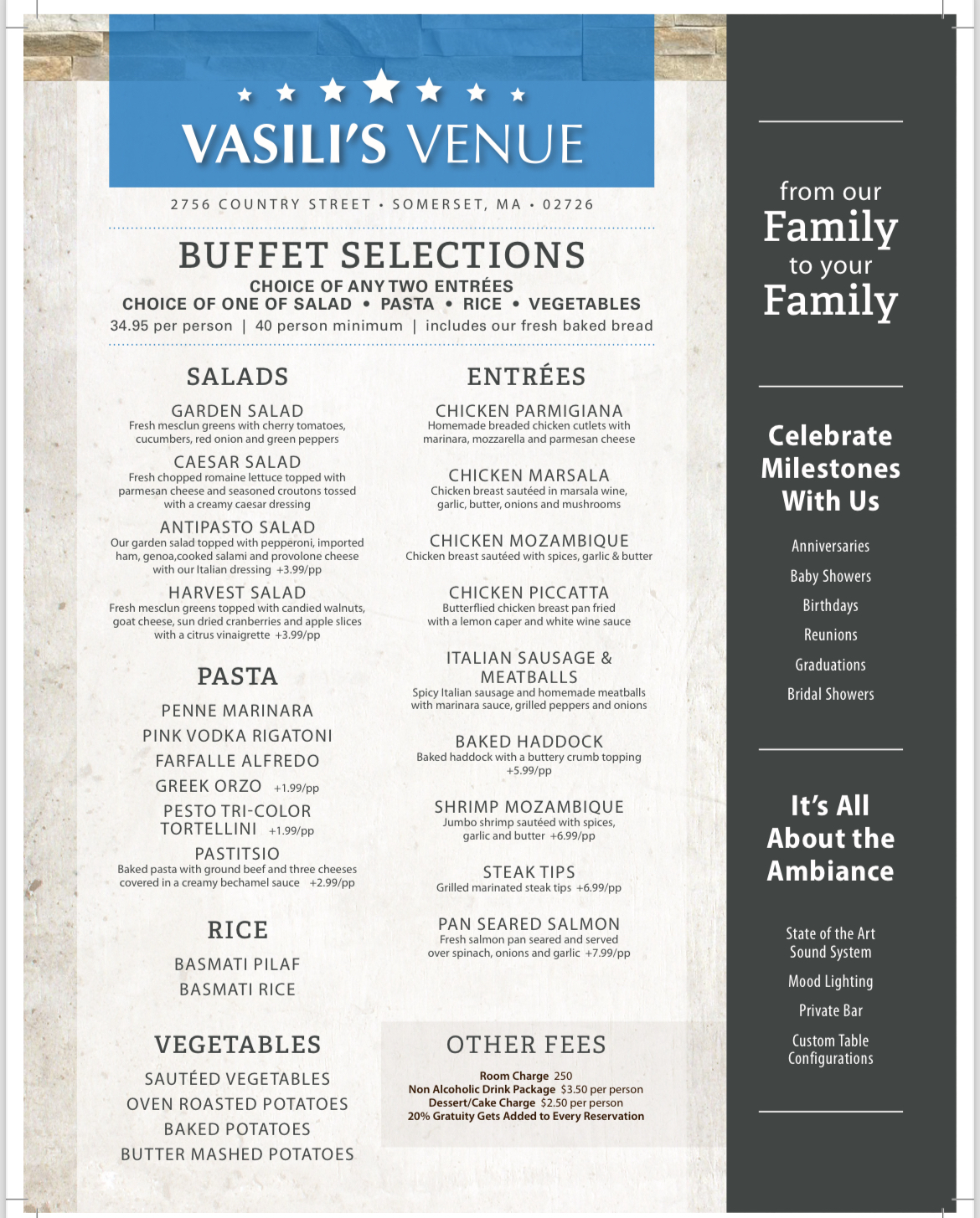 CHOICE OF ANY TWO ENTRÉS   |   CHOICE OF ONE OF SALAD, PASTA RICE VEGETABLES